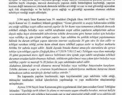 3194 SAYILI İMAR KANUNUNUN 39. MADDESİ GEREĞİNCE YIKILACAK DERECEDE TEHLİKELİ YAPI HAKKINDA TEBLİGAT 3194 sayılı …